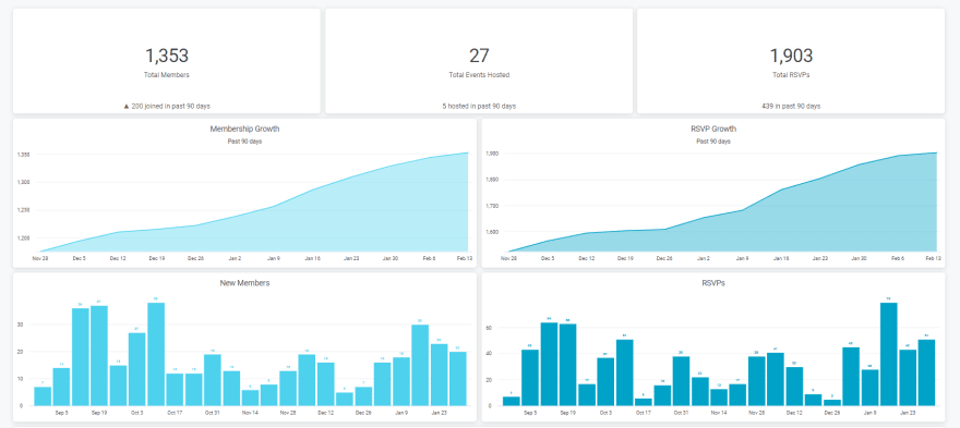 We have held 27 events so far, and we have received a total of 1,903 RSVPs. Our website has also attracted close to 1,000 new users since we started analyzing traffic a few months ago. We have developed an in-house job board application that has roughly 1,000 impressions since we launched it a few months ago. You can read more about this on this post.
