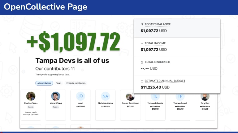 Initially, we were hesitant to seek monetary support as we both had decent incomes, so we funded Tampa Devs out of our pockets. However, we're grateful for the tremendous support we have received so far.